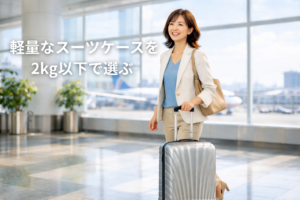 バッグは、軽量で、急な小雨にも安心な撥水加工が施されつつ軽量できれいめを基準に選びましょう。